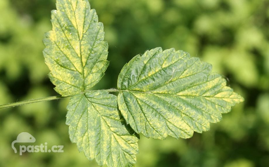 - Virus zakrslosti maliníku způsobuje žloutnutí listů, slabý růst a drolení plodů kvůli vadnému vývoji peckoviček.