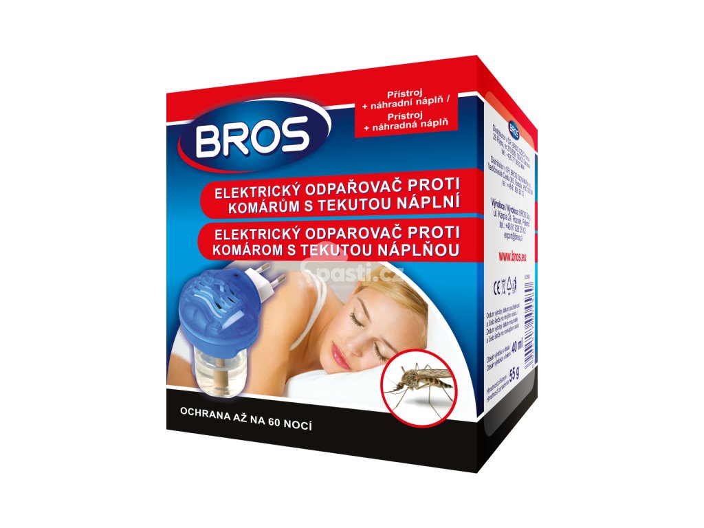 Obsahuje 40 ml odpuzující látky v nádobce a hlavu pro zapojení do elektrické sítě.