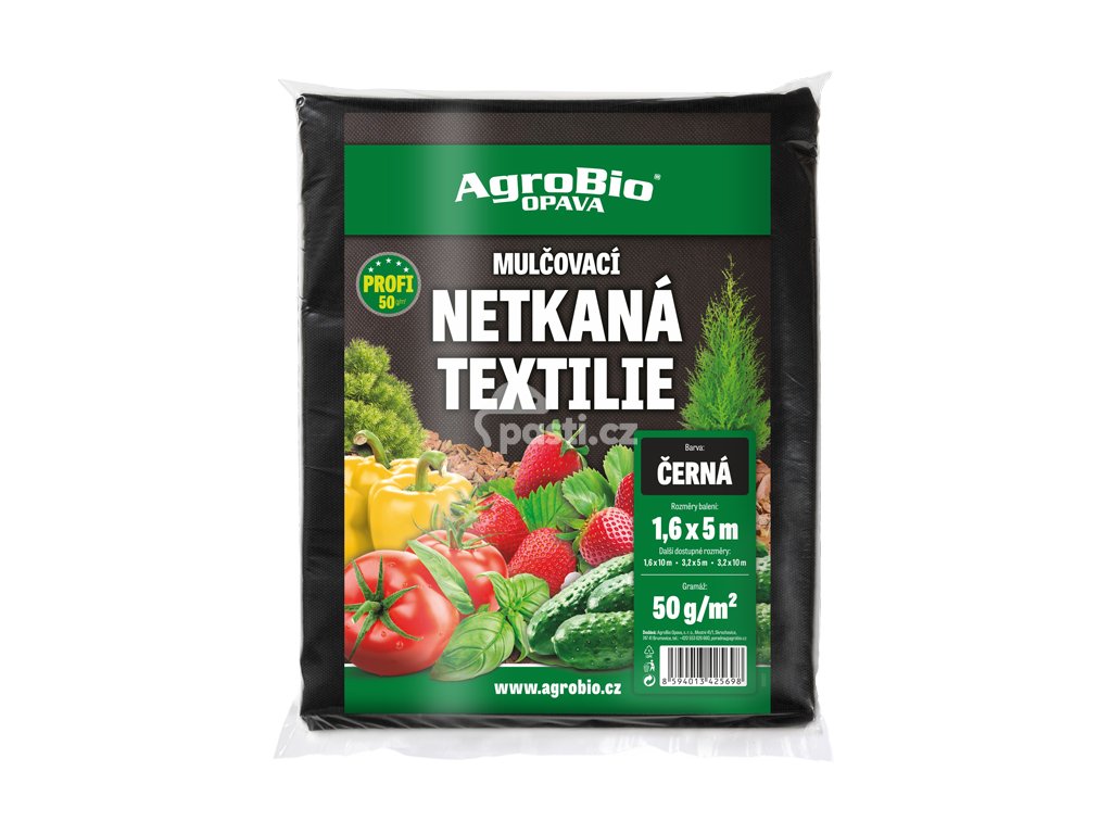Mulčovací černá netkaná textilie v profi kvalitě od českého výrobce. Textilie zamezuje nadměrnému výparu vody z půdy a zabraňuje prorůstání plevelů, čímž snižuje potřebu používání herbicidů a zamezuje nadměrnému výparu vody z půdy.