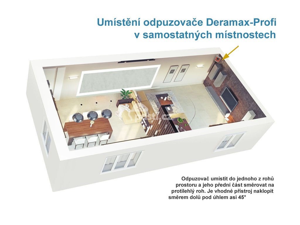 Účinný dosah (uvnitř budov): Dosah až 650 m2 (až 1950 m2 pro celou sadu Deramax-Profi-Trio).