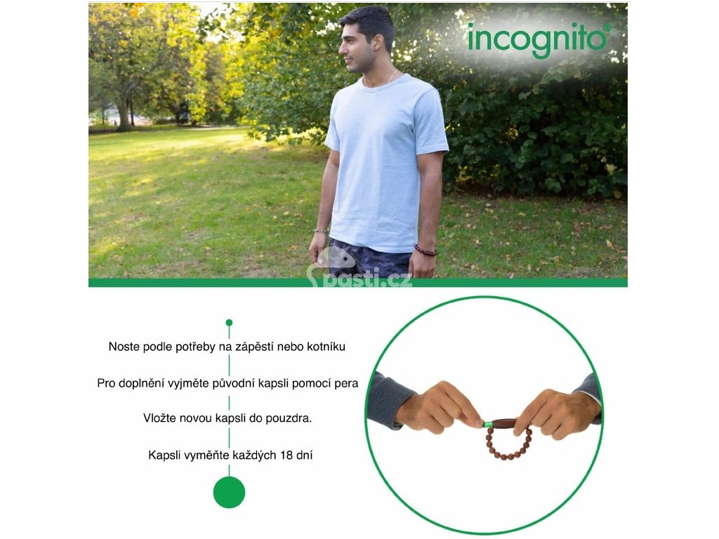 Pro kompletní ochranu používejte používejte ve spojení s Incognito přírodním repelentem, Incognito krémem nebo INCOGNITO Repelentní roll-on.