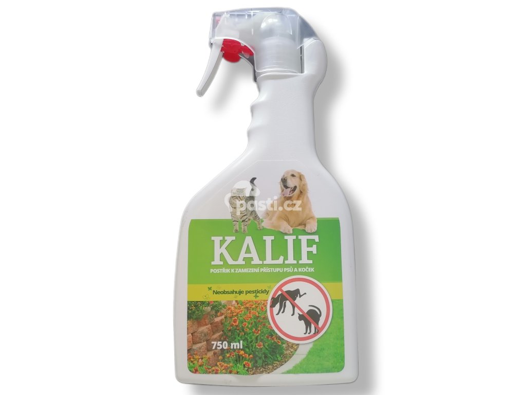Sprej Kalif proti psům a kočkám je netoxický postřik v mechanickém rozprašovači. Zamezuje přístupu psů a koček k nežádoucím venkovním místům a plochám. Připraveno k přímému použiti.