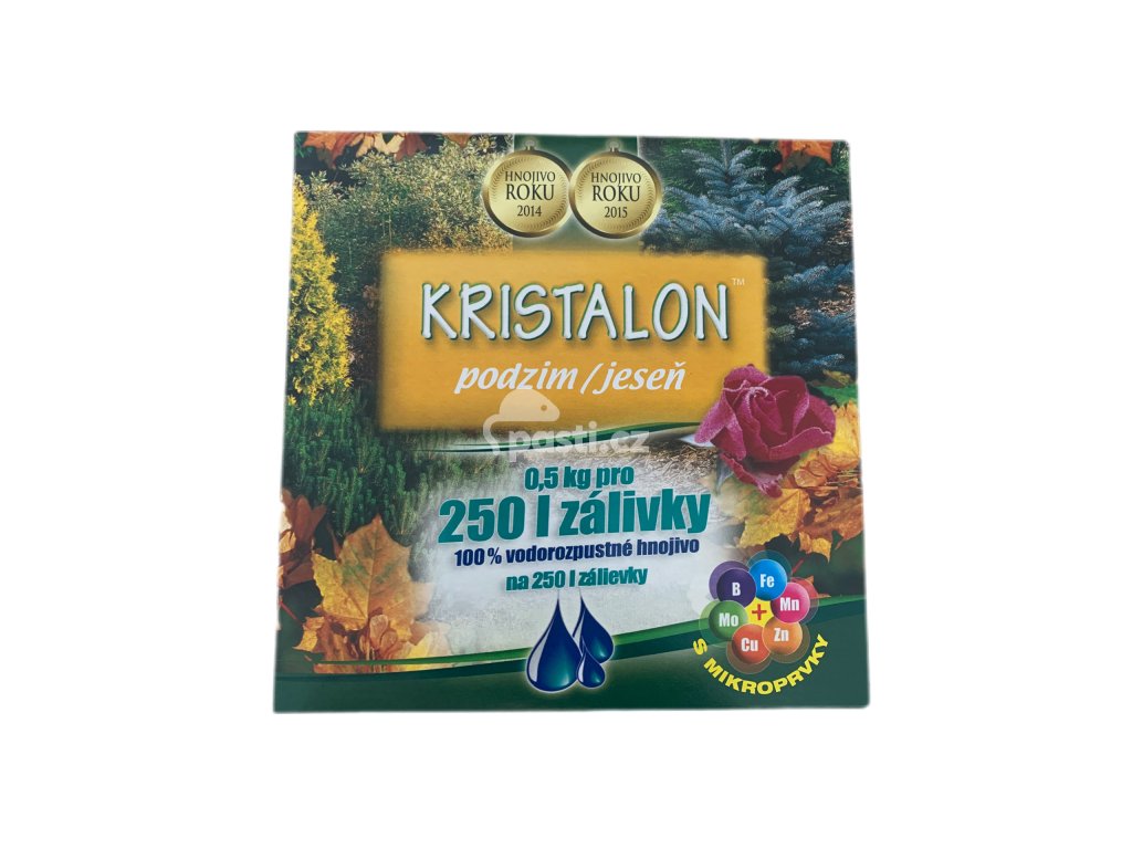 Kristalon Podzim je speciální krystalické hnojivo určené pro podzimní výživu rostlin. Díky vysokému obsahu draslíku podporuje vyzrávání pletiv, čímž zvyšuje odolnost rostlin vůči mrazu a nepříznivým zimním podmínkám.