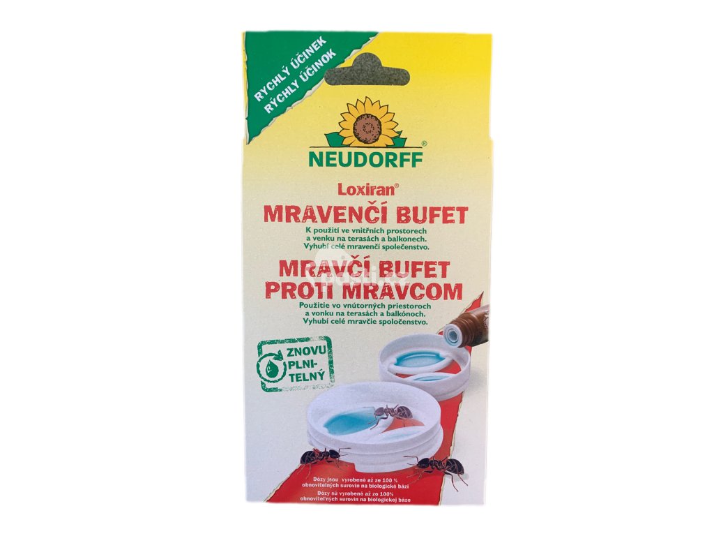 - Návnadové dózy Loxiran mravenčí bufet umístíme do bezprostřední blízkosti mraveniště, nebo přímo na mravenčí stezky. V interiéru ideálně ke zdi k prasklinám, odkud mravenci vylézají.