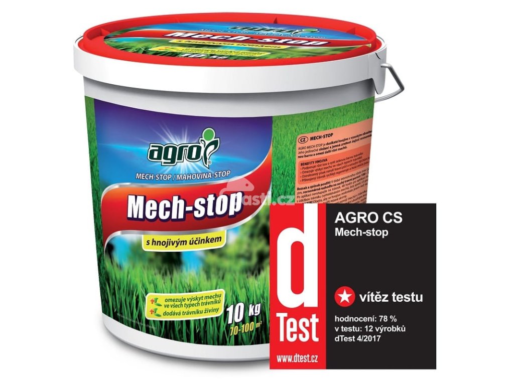 MECH-STOP je velmi účinný přípravek pro likvidaci mechu v trávníku s hnojivým účinkem. Po použití přípravku dochází k zaschnutí mechu v trávníku. Poté lze mech z trávníku snadno odstranit. Hnojivé složky spolu s dusíkem a železem obsažené v mech-stopu zajistí rychlou regeneraci trávníku a jeho krásné zbarvení.