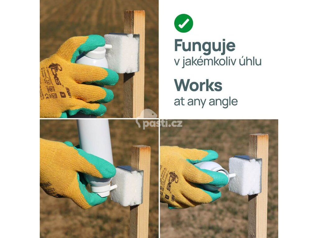 - Aplikátor/víčko s plombou a možnost aplikace lahvičky i nakloněním v jakémkoliv úhlu – praktické pro terénní použití