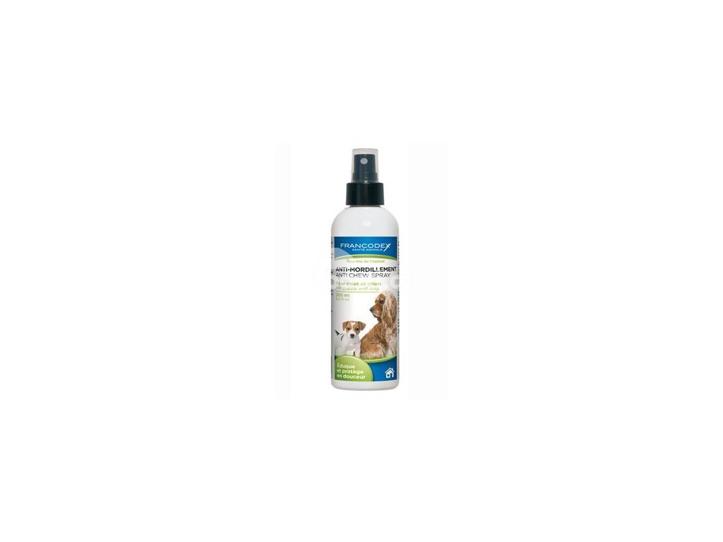Sprej proti okusování pro psy a štěňata od Francodex Santé Animal zabrání tomu, aby váš pes okusoval předměty, které okusovat nemá. Například nábytek, kabely, apod. Účinnou látkou je eukalyptus, který psům vadí.