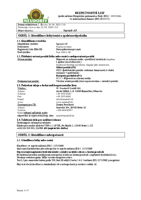 Účinné látky: přírodní pyrethriny 0,05 g/l, olej řepkový 8,25 g/l