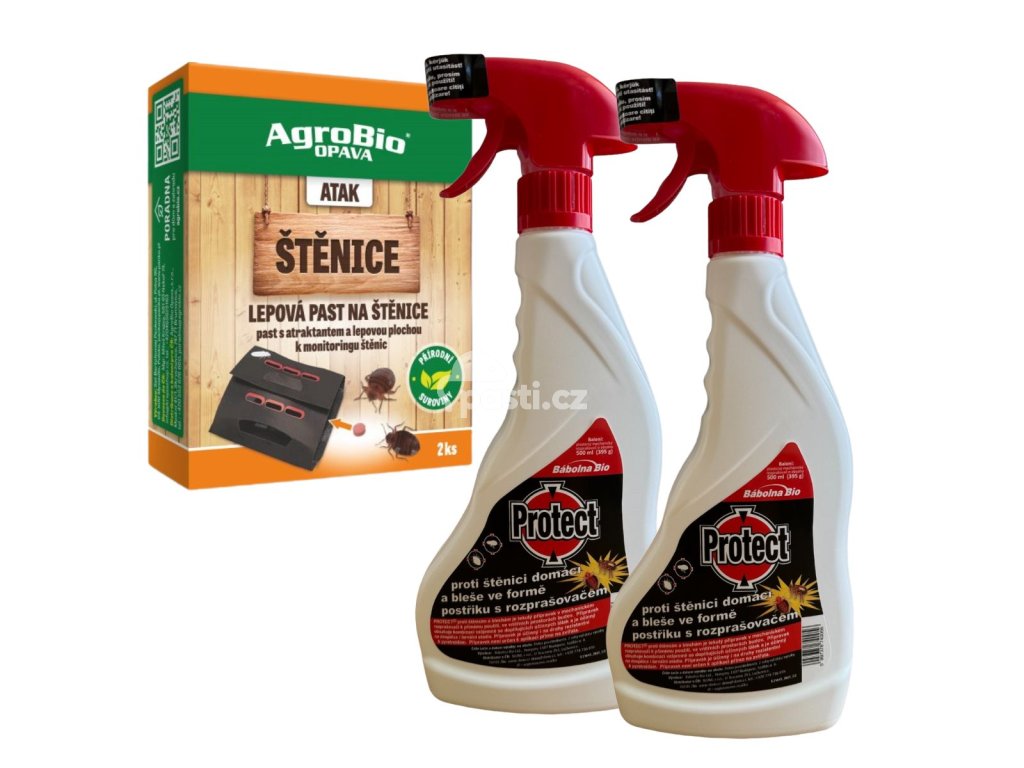 Tato cenově výhodná sada obsahuje: 2x postřik Protect 500ml, 1x sada pastí na štěnice (2 kusy). Oba produkty lze zakoupit i samostatně, sada je výhodnější.