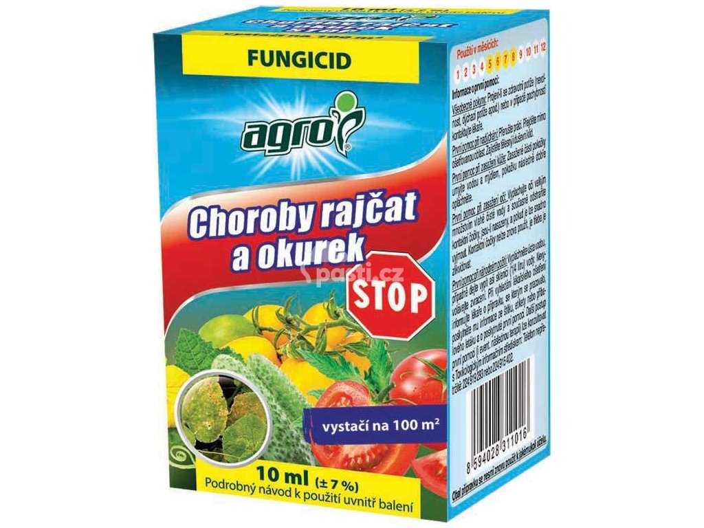 Účinný postřikový fungicid k ochraně okurek a rajčat, cibule, hráchu a česneku před houbovými chorobami. Balení vystačí na plochu cca 100 m².