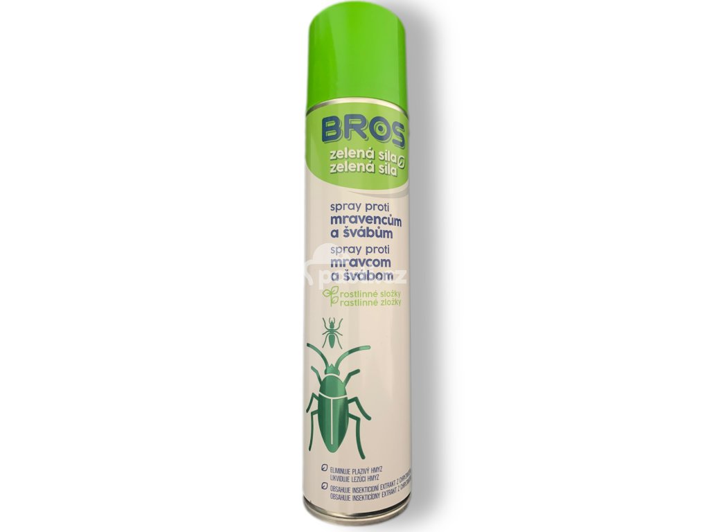 Bros Zelená síla sprej proti mravencům a švábům 300 ml je insekticidní aerosol určený pro likvidaci mravenců, švábů a pavouků.
